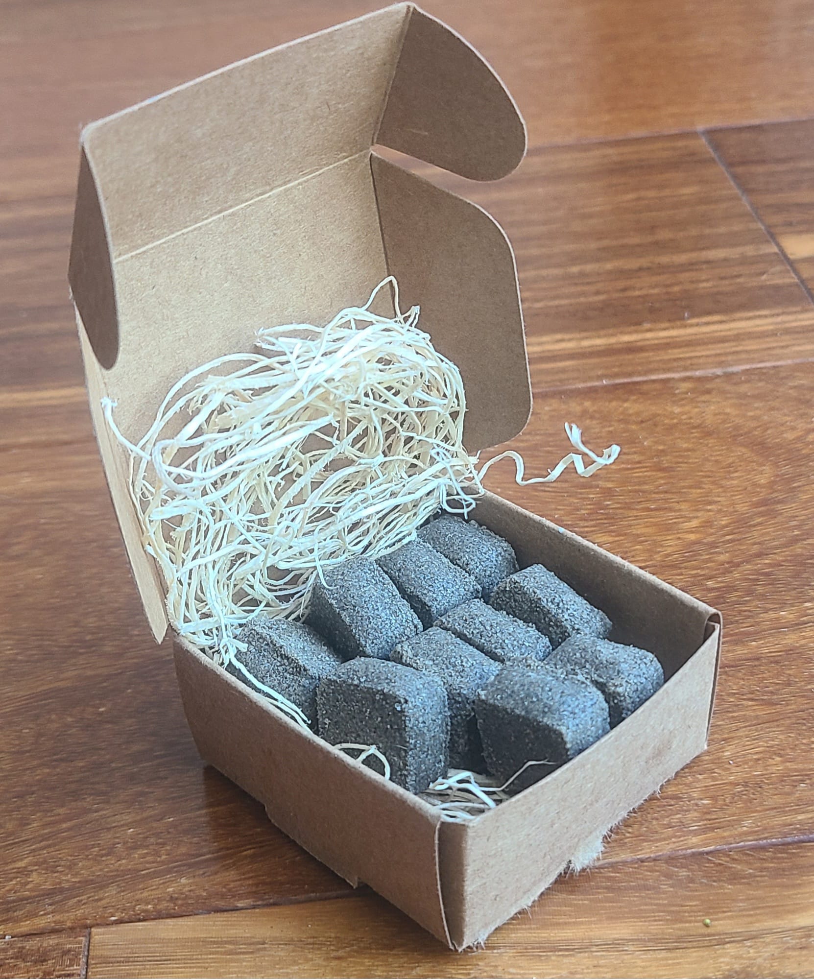 Sodium Bicarbonate, Citric Acid, Sea Salt, Salvia Officinalis (Sage) Powder, Cinnamomum Zeylanicum (Cinnamon) Powder, Kaolin Clay, Cocos Nucifera (Coconut) Oil, Prunus Amygdalus Dulcis (Sweet Almond) Oil, Butyrospermum Parkii (Shea Butter), Polysorbate 80, Pogostemon Cablin (Patchouli) Oil,  Water.